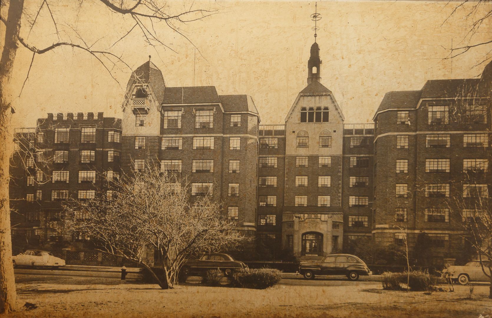 Built in 1942 by Steward Wagner and Alfred Fellheimer — the latter was a lead architect for Grand Central Terminal — The Leslie occupies the community's original sales office site with a commanding position opposite the charming Flagpole Green. The brick and limestone facade features Tudor and Art Deco details bordered by park-like grounds and a decorative garden wall.