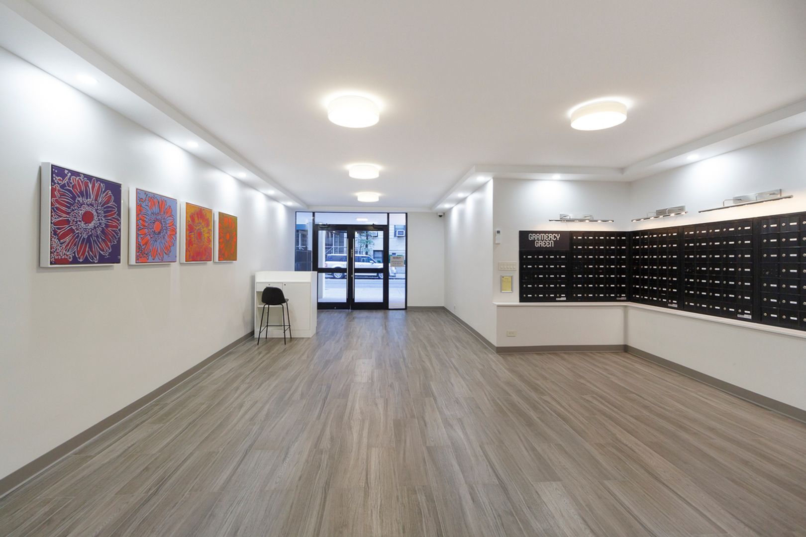 Gramercy Green is a luxury building offering a bright and airy lobby filled with curated artwork. The 220 apartments range from studios to four bedrooms, each filled with hardwood floors, tall ceilings, large windows, updated bathrooms, and modern kitchens with stainless steel appliances.